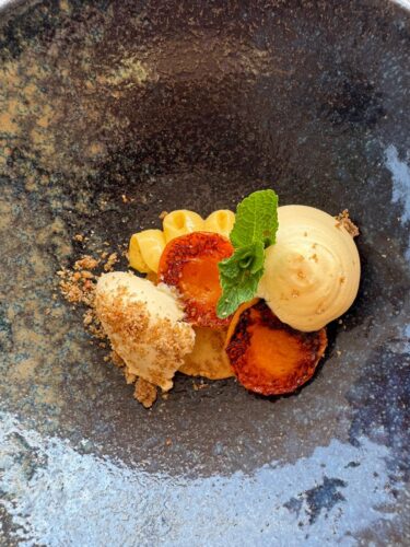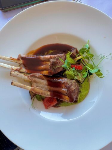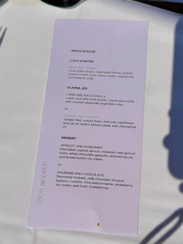 Aquí no solo vas a comer bien, sino que vas a vivir una experiencia gastronómica con vistas absolutamente únicas. La terraza —colgada literalmente sobre el lago— es perfecta para una comida especial o una cena al atardecer que parece sacada de una postal eslovena. Más abajo te cuento el menú que elegimos nosotros, casi nos tienen que echar de allí, no nos cabía más comida, pero no queríamos irnos…