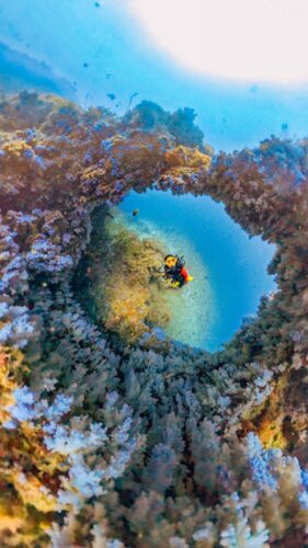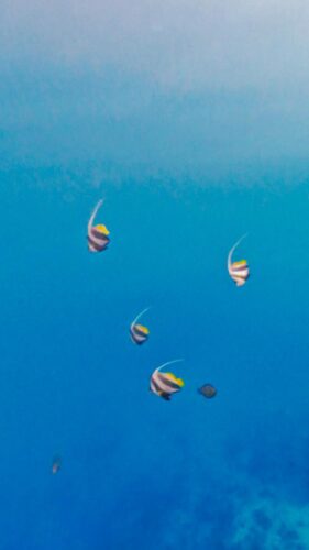 La vida a bordo tiene un ritmo propio, y lo curioso es lo rápido que te adaptas. Los días empiezan temprano, con la primera luz entrando por la escotilla y el mar completamente en calma. Café, algo ligero y, para quien bucea, la primera inmersión del día. El resto puede quedarse en cubierta, mirando cómo el sol termina de levantarse o saltar al agua con máscara y tubo. No hay prisas ni estrés: cada actividad parece suceder de forma natural.