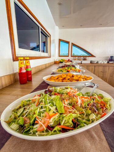 En mi caso, además, y solo puedo recomendar lo que vivo en primera persona, te recomiendo Albatros Top Boat. Porque fue, sin rodeos, brutal. La comida ha sido la mejor que he probado en toda Asia (hasta las verduritas, Mari), la limpieza es obsesiva y el mimo con el que cuidan los equipos y las zonas comunes roza lo quirúrgico. El barco estaba más limpio que mi encimera, y eso ya es decir bastante. Son detalles que no salen en las fotos, pero que marcan por completo la experiencia cuando vives una semana en el mar.
