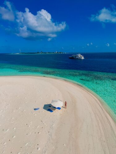 También es ideal para quien quiere ver mucho sin cansarse. En un mismo viaje puedes bucear o hacer snorkel en distintos atolones, pisar islas locales, pasar la tarde en una lengua de arena desierta y dormir fondeado en una laguna irreal. Todo sin sensación de traslado constante. El movimiento existe, pero no se nota. El barco se encarga de esa parte invisible del viaje que suele desgastar..