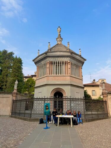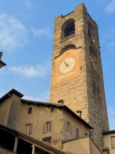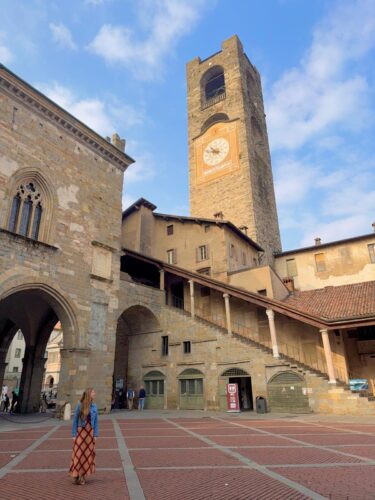 Históricamente fue el corazón político de Bérgamo durante siglos. Aquí está el Palazzo della Ragione, uno de los edificios comunales más antiguos de Italia, y la Torre Civica (Campanone), que aún hoy sigue tocando 100 campanadas cada noche a las 22:00, recordando la hora a la que se cerraban las puertas de la ciudad en época veneciana. Otro imprescindible es la Biblioteca Angelo Mai, que guarda auténticas joyas literarias y manuscritos. Por cierto, Le Corbusier, el famoso arquitecto, dijo que esta plaza era “la plaza más bella de Europa”. Puede que se pasara un poco de entusiasta… pero cuando te sientas en medio, con un spritz en la mano y vistas de todos esos siglos de historia, entiendes al pobre hombre….