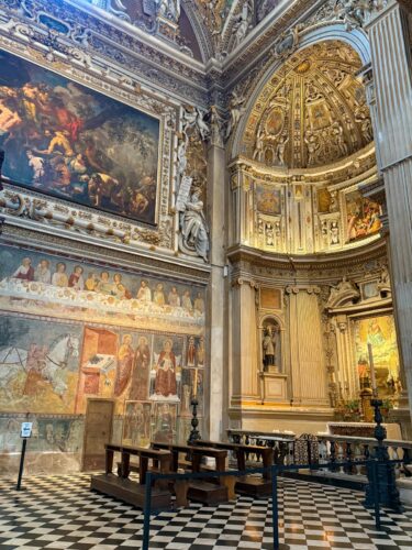 Entre sus tesoros destacan las reliquias de San Alejandro, un precioso altar mayor y varias obras de artistas lombardos. Aunque no tenga la exuberancia de sus vecinas, el Duomo cumple un papel fundamental en la identidad de la ciudad: es el corazón religioso de Bérgamo y un buen contrapunto para no salir saturado de tanta ornamentación.