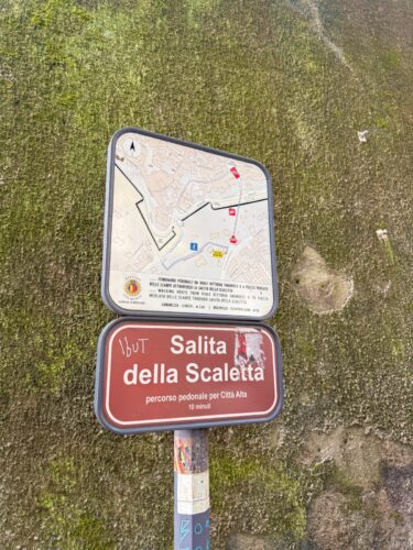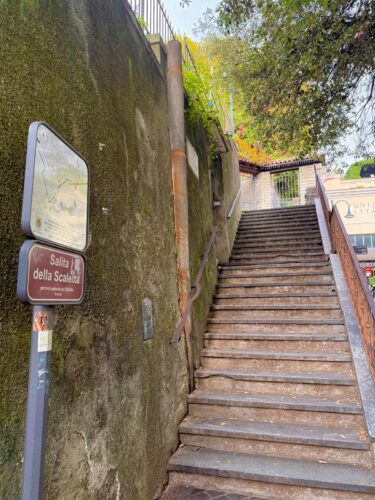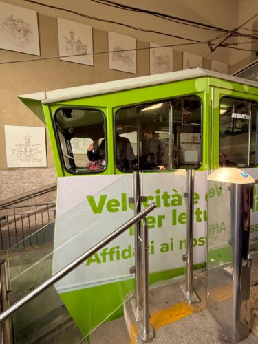 Subir a la Città Alta de Bérgamo en su funicular es casi un ritual. En apenas un minuto y medio y poco más de 3€, este vagón centenario te lleva desde la ciudad baja hasta las murallas venecianas, mientras ves cómo los tejados van quedando bajo tus pies y el paisaje se abre en capas. Es rápido, pintoresco y cuesta poco más que un café. Pero si prefieres hacerlo “a la vieja usanza”, puedes subir por las escaleras que serpentean entre casas y jardines: 300 peldaños que te regalan otra versión del ascenso —más sudor, sí, pero también más silencio y vistas secretas entre piedra y buganvillas. Funicular o escaleras, llegar arriba siempre tiene premio.
