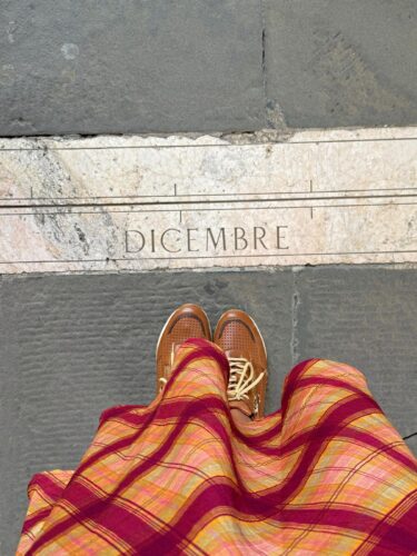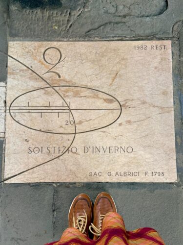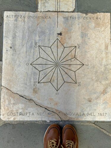 La Meridiana del Sole es otro de esos pequeños tesoros “escondidos, pero no” en la Piazza Vecchia que ver en Bérgamo. Se trata de una línea meridiana solar trazada en el suelo frente a la Biblioteca Angelo Mai, instalada en el siglo XVIII. Funciona con un sistema muy sencillo y fascinante: un rayo de sol, que entra a través de un pequeño orificio en la fachada, proyecta un punto de luz sobre la línea marcada en el pavimento. Ese punto de luz se desplaza a lo largo del día indicando la hora solar verdadera, pero también el paso de las estaciones, ya que la posición del rayo varía según el momento del año. Es decir, además de reloj, era un calendario solar.