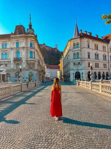 Lleva el nombre del poeta nacional France Prešeren, que tiene estatua propia mirando de frente a una escultura de su amada (porque aquí incluso el urbanismo es romántico). A un lado está la iglesia rosa de los franciscanos —icónica y fotogénica—, al otro, el famoso Puente Triple, y justo en medio, un vaivén constante de gente que convierte esta plaza en punto de encuentro.